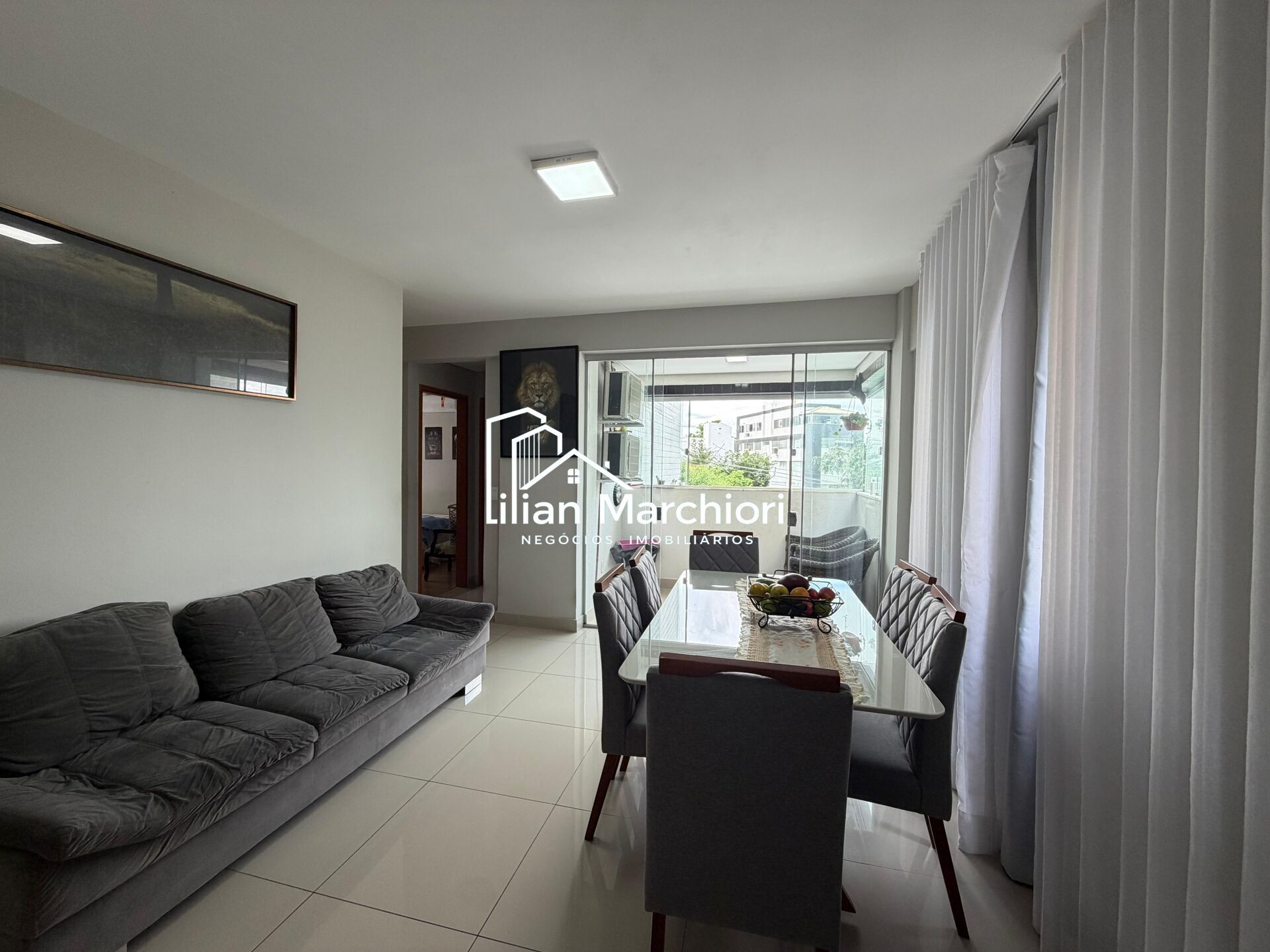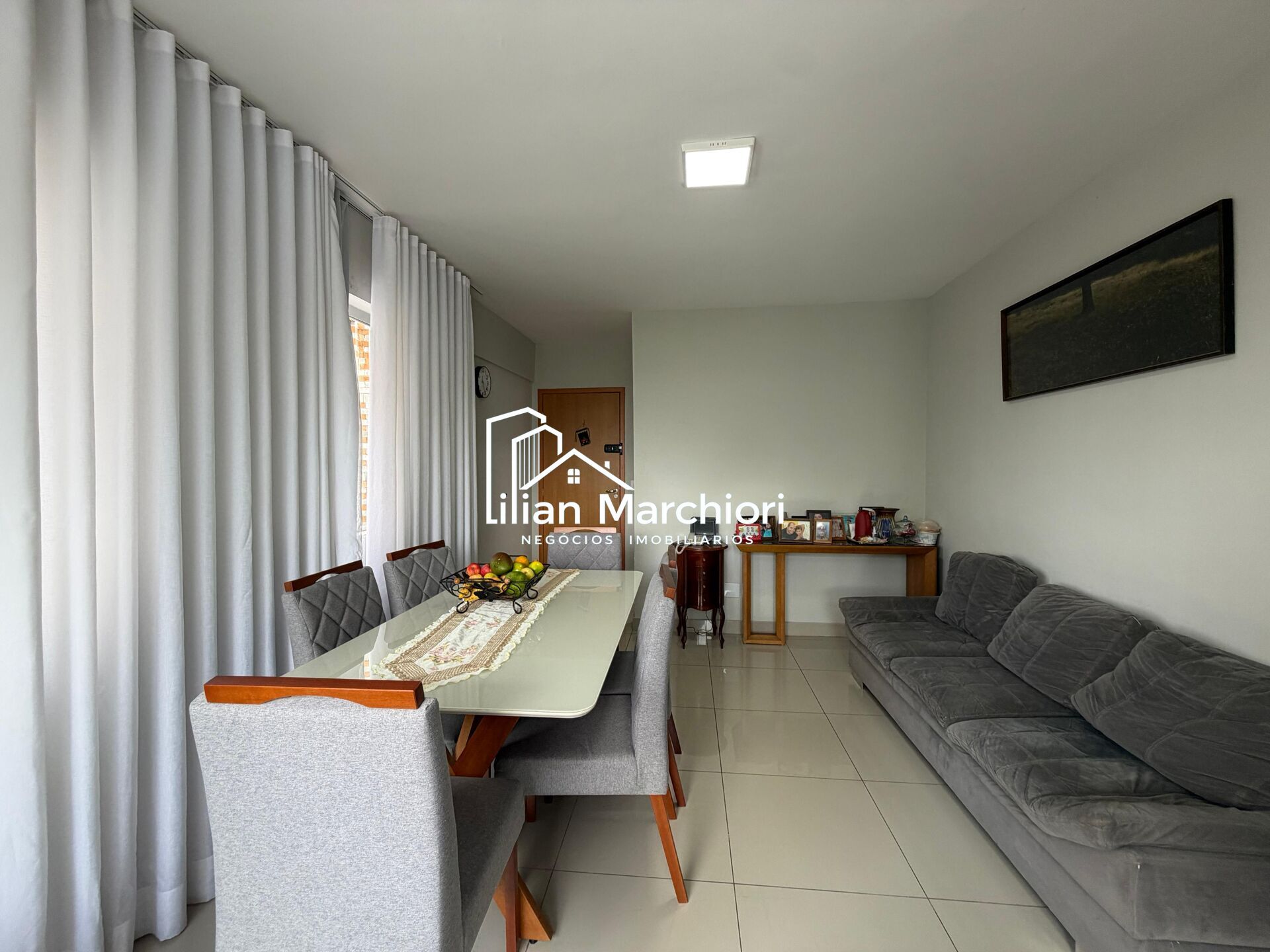 A sala é ampla, ideal para dois ambientes, integrada à varanda, proporcionando conforto e boa iluminação natural. A cozinha é funcional e bem ventilada, contando ainda com área de serviço, oferecendo mais praticidade no dia a dia.